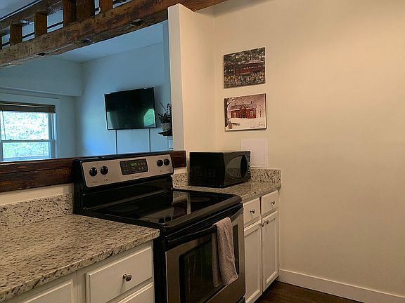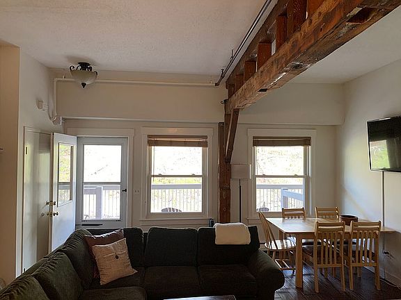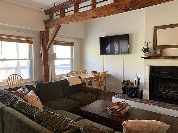 Situated in the center of Ludlow, overlooking the Black River, this Mill condominium makes the ideal ski condo. Renovated in 2018, the condo features new tile flooring throughout, new granite countertops and updated furnishings. This main level condo has 2 bedrooms and 1 bathroom, with original wooden beams throughout. It is located within walking distance to all downtown amenities and the Okemo shuttle. Enjoy a glass of wine overlooking the river or come in and enjoy the fireplace at the end of the day. Easy renter: in 2020, this condo generated over $40,000 in rental revenue. Bring your agents, buyer's agent 3% commission protected. Showings begin May 20.