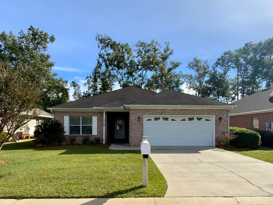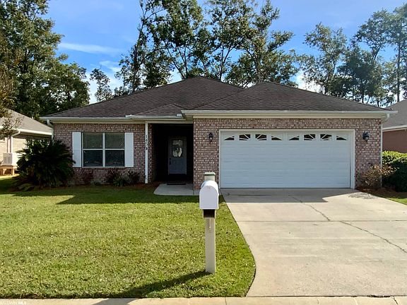 Beautiful 3 bedroom 2 bath split floor plan home in the desirable 55+ gated Live Oak Village. Home has fresh paint through out and freshly painted garage/garage floors. When you walk up to the front door the exterior entry way is tiled. The home has 9 ft ceilings with a tray ceiling in the living room. Kitchen has granite counters with a breakfast area and dining area. Primary bedroom has double doors leading out to a 9 X 23 covered and screened in patio area. The patio are has brick surround and tile floors.