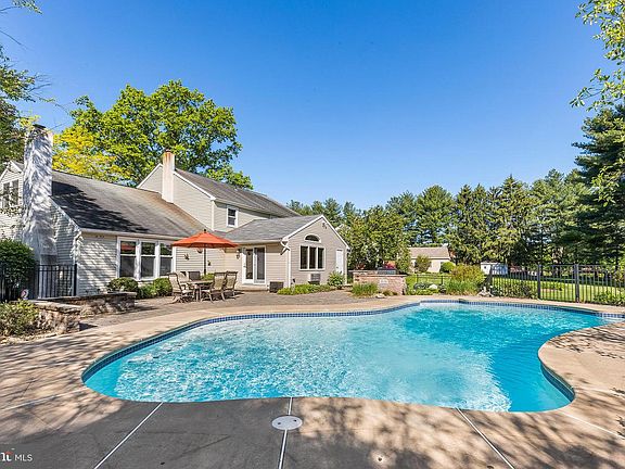 Amazing 4 Bedroom, 3 Bath home in sought after Doylestown Township situated on over 1 acre. Beautiful manicured lawn and lush mature landscaping for the ultimate privacy. Once you enter, the oversized foyer with custom wainscoting has views through the kitchen and sunroom featuring a wall of windows overlooking the private back yard. Down the hall you will find a completely upgraded kitchen with custom cherry cabinets, breakfast bar, under cabinet lighting, granite countertops, and new stainless appliances with an induction cook top stove and a double wall oven. The kitchen is open to an oversized light filled family room which is complete with custom built-ins and new gas fireplace. Off the kitchen is the sunroom with vaulted ceilings, full bath, and gorgeous views of the backyard through picturesque window and glass slider. A large Dining Room open to the Living Room, both with newer wide plank hardwood flooring, custom chair rail, wainscoting and moldings, as well as a laundry room complete this floor. Upstairs you will find a generously sized Owner's suite with walk in closet, built-in vanity and updated bathroom. An updated hall bath, Bedrooms 2, 3 & 4 all with hardwood flooring , and large 5th Bonus Room/Bedroom complete the second floor. The Bonus Room would be a great private Home Office, Loft Space, Exercise Room, Hobby Room, Mancave or additional Bedroom. The finished Lower Level has an impressive Media Room with built-in entertainment center, custom bar, additional finished space (currently being used as a gym), outside egress, and multiple storage rooms. The backyard is your very own private retreat complete with an oversized saltwater pool, paver patio with retaining walls, lighting, outdoor kitchen with bar area, custom hardscaping, granite counter tops, stainless steel Coyote built-in grill, refrigerator, and custom paver gas fire pit. The owners have done all the hard work for you! Newer AC, hardwood floors throughout, new dishwasher, recessed lighting upgrades, replacement windows, backup generator, refinished garage floor, new pool cover, new pool pump, 4 Bedroom septic system inspected and all repairs made in 2020,. Private retreat and you can enjoy being 2 minutes from downtown Doylestown's restaurants, shopping, schools, parks and Bike and Hike Trail System. Central Bucks Schools. Move in and instantly enjoy your private outdoor entertainment area and pool this summer!
