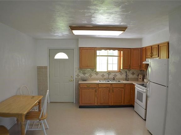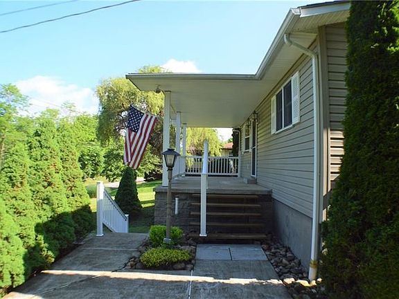 Spotless vinyl ranch with big front porch. Lovely wall with lamps line the driveway with off street parking. Very neutral interior, creams/white/tan, will compliment any decor. Newer wall to wall carpeting throughout. Eat-in-kitchen includes the appliances, door to rear covered patio and access to large back yard. A great place to BBQ! Tub/shower in main bath, vinyl flooring. There are two bedrooms, both with nice closets. Low maintenance landscaping. The basement is a large dry open space with laundry area, toilet and plumbed for shower on the corner. Oil tank and additional storage area underneath the front porch. Finish it off for a family/game room! French doors to driveway. Country living, yet close to highways.. Come out and take a look