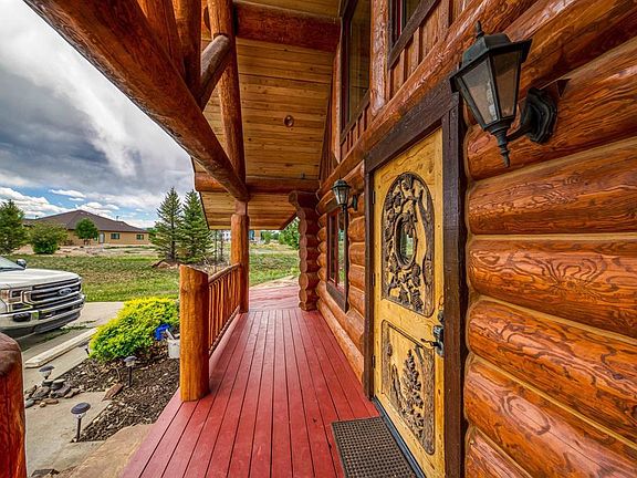 Extremely sought after location for a great business opportunity in Montrose Colorado. Beautiful log home sitting on 1.8 acres Zoned B2, could be your chance to VRBO, BnB, or run your business from this fantastic location. With an ample 3300 sq ft of living area and a Detached 2 car garage with upstairs loft that could be converted into additional living space the options are abundant. Gorgeous views of the San Juans from the property. Vaulted ceiling with open loft and upstairs deck. This home is located within walking distance to the River Walk Trail and Colorado Outdoors. Large concrete off-street parking; located at the end of the cul de sac. The logs have been stripped, re-stained and chinked in 2021. The interior of the home is spectacular with hand carved walnut floors and plush carpeting. The kitchen has Bosh appliances with an induction stove and gun metal stainless finish. Custom kitchen cabinets and a rolling island for additional opportunities. Gas fireplace ,Steam shower, 2 person hot tub, handicapped entrance, quiet private location. Finished basement that is currently leased on a month to month basis. The zoning of this property creates an environment with endless opportunities. The 1.8 acres leaves room to expand commercially or personally. Come take a look at this property and seize your entrepreneur dreams.