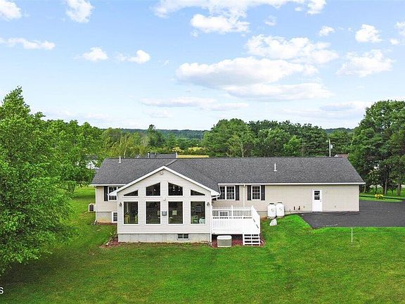 MULTI OFFER DEADLINE NOON 7/18/23 Original owners took great care in building & maintaining this home.The layout has an open flow, allowing for easy movement from entry to kitchen, dining, & living room areas. The family room offers a cozy space with a view of the woods as nature passes by & hardwood floors.Enjoy 2 acres of lush green lawn in the summer or a fun sledding hill in the winter.The kitchen is well-equipped with stainless steel appliances, granite countertops, kitchen island, & ceramic tile floors, microwave vents outside & stove is propane.Other notable features of the home include a 9-year-old roof, 30 amp RV hookup, generator hookup, water softener system,security system, 9' ceilings & egress windows in the basement, laundry shoot, pocket doors, oil furnace&HW