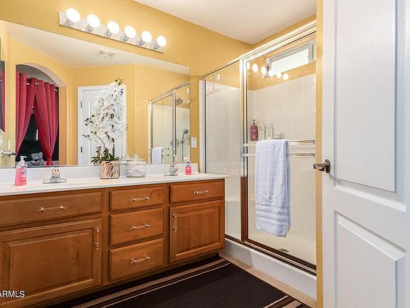 Amazing 4 bedroom pool home in the Golf Community of Cold Water Springs! Nice front porch entry & desert landscape. Discover a bright interior w/designer palette, laminate wood floor in the living area, & built-in media shelves. Patio access from the dining area. Master your cooking in the chef's kitchen featuring plenty of white cabinets, SS appliances, stylish counters, mosaic backsplash, pantry, & recessed lighting. The main bedroom comes with a private bathroom, dual sinks & a walk-in closet. Plush carpet in all bedrooms w/large closets. Spacious loft area w/endless possibilities and four spacious bedrooms upstairs. Enjoy the fantastic backyard sparkling pool with stone waterfall, covered patio, pavers & lots of space for entertaining. Refrigerator in kitchen, extra fridge at patio, washer and dryer and mounted Big Screen TV's inside and at patio, plus newer RO System. Welcome Professional baseball players, Coaches, and Managers for 2022 Baseball Spring Training! Submit your application and I will let you know when is possible to show you the property. Is an unfurnished house. Thank you! Up to three small pets permitted, $300 Pet deposit fee, $400 Cleaning deposit fee non refundable.
