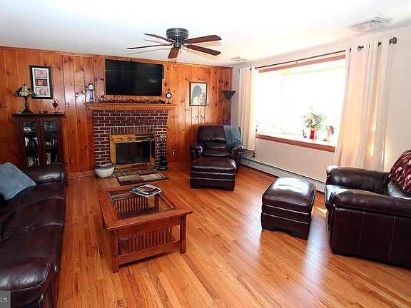 Be ready to be totally ~WOWED~ by this updated and expanded Brick Rancher situated on almost 3/4 of an acre!! A welcoming covered front porch greets you as you enter into the bright Living room with large bay window, brick wood burning fireplace with mounted tv (included) and gleaming hardwood floors that continue into the dining room flooded with light from the big picture window. In 2008 a major addition was added starting with the new Beautiful kitchen featuring custom cabinetry from Century Kitchens with under cabinet lighting, Tile flooring, granite counter tops with breakfast bar, Fisher & Paykel double DishDrawer dishwasher, electric flat top stove, built in microwave, Refrigerator (included) and large pantry. The Kitchen leads to an absolutely fabulous 25 X 19 family room addition with hardwood floors, cathedral ceiling, ceiling fan and wall of windows overlooking the huge backyard with a slider to the rear patio. Wall mounted TV and surround sound system included. There is a full bath off of the family room. There are 3 nice sized bedrooms, one with double closets and all with closet organizers. An updated hall bath with tile flooring and pedestal sink. There is a full basement with workshop area, rec area, laundry room and storage with additional storage in the crawl space under the addition. Attached Oversized 2 car garage. Covered pavilion in backyard. Shed with electric. 200-amp electric service, 3 zone oil hot water heat, central air replaced in June of 2018. Newer windows, doors, roof, garage doors, driveway, sidewalks. All you need to do is move in and enjoy!