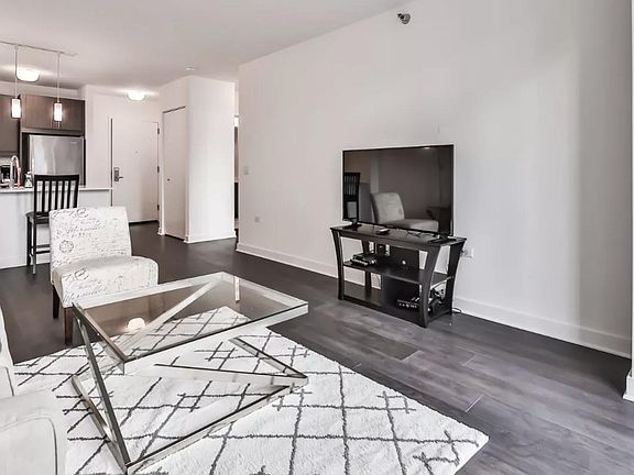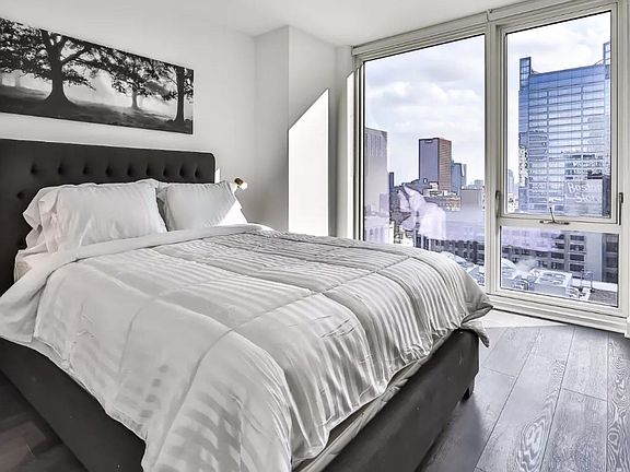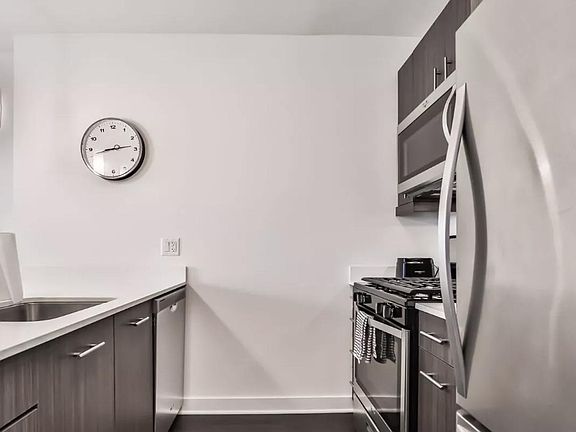 Unit features floor-to-ceiling windows, hardwood floors through out, in-unit laundry, stainless steel appliances, kitchen island with counter seating, open living room and central A/C and heat. Building offers 24 hr front desk staff, onsite package system, fob-entry access, fast moving elevators, 24 hr fitness center, sauna/steam rooms, outdoor Jacuzzi, outdoor pool and more!