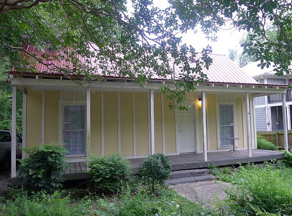 Mid century 3/1 cottage on large lot in artistic area of Athens. Red metal roof, updated Kitchen & Bath, wood floors, 2 tiled fireplace mantles. Kitchen features double sink, new refrigerator and oven, and a window overlooking the large back yard, which is mostly fenced. Alarm, Central HVAC, tiled bathroom, Washer & Dryer, ceiling fans in every room. Some rooms have 10' wooden ceilings. Some bead board walls. Covered front porch, tin roof added in 2009. The band Reptar used to live in this house and jam. Neighbors didn't mind. Recently rented for $950 now offered for sale. House needs some TLC. Just blocks from downtown, UGA campus, Dudley Park, the Oconee River, the Greenway Trails, Multi-Modal Transportation Center & future rails-to-trails path into downtown. Easy to get to downtown, UGA and back.