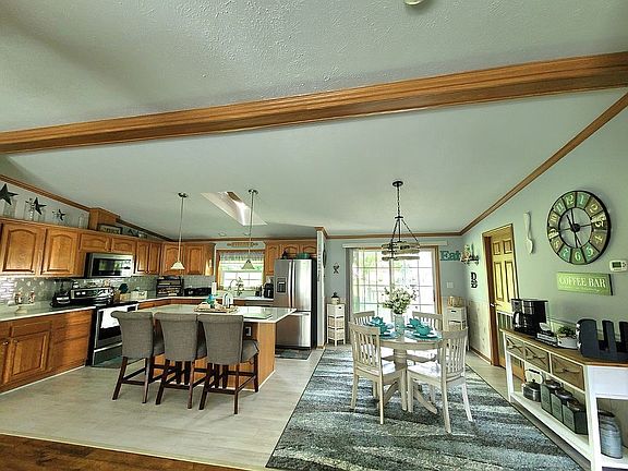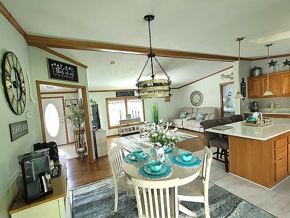 This stunning 2004 double-wide offers beauty, space, and all the extras! Enjoy an open-concept layout that connects the kitchen, dining area, and living room together. Step out from the dinning room to the covered back porch to have your morning coffee or to just relax. This home is perfect for everyday living and entertaining. Quiet Country setting, featuring 3 spacious bedrooms, each with its own walk-in closet, 2 full bathrooms, a dedicated laundry room, brand new trex decks on the front and back porch, this home has a one car detached garage with electric and a remote door opener and plenty of room to park 4 cars or a RV, boat in the driveway. This home has lots storage. there's also a concrete slab for a shed. The home has a really nice big yard to entertain family and friends. The home is located in a 55+ Community, on a rented lot of 300.00 a month. This home is truly move-in ready!