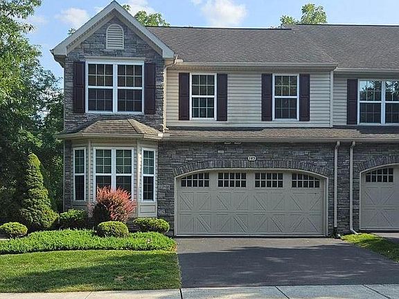 This beautiful Adeline end unit townhome is located in the Pine View development in West Hanover Township. Adeline is the largest of 6 styles which were available when Pin View was developed. It has a side door entrance which opens into the first floor dinning and a vaulted great room with skylights that allow plenty of southern light. The great room has a gas fireplace which warms the entire room. The rear door opens to an oversized deck with beautiful wooded privacy. The kitchen is open and has a bay breakfast nook. The first floor master suite has an attached bathroom with double vanity and a walk-in closet with plenty of space. The washer and dryer are conveniently located on the first floor. Upstairs you will find two bedrooms, a full bathroom, and a large flex loft space perfect for a media area, a playroom, a fitness space, or a home office. There are ceiling fans in the bedrooms, as well as the family room and loft space. The basement has a walkout door and plenty of space to finish and still keep ample storage. A two-car garage with one oversized electric garage door makes parking and easy access. HOA takes care of exterior maintenance, lawn care and snow removal. The location is perfect, and provides close access to major transportation routes, aiding in easy commutes and convenient travel.
