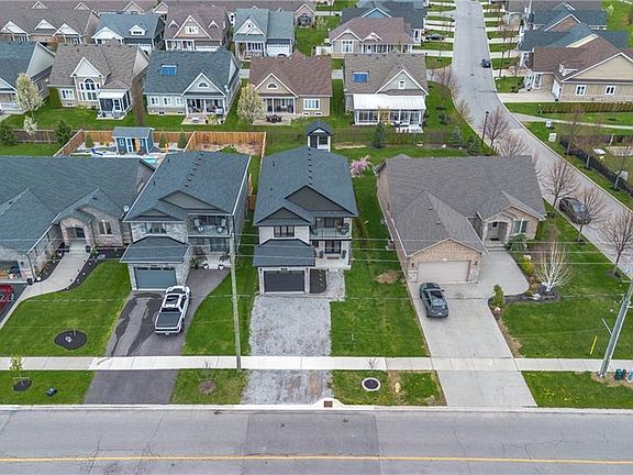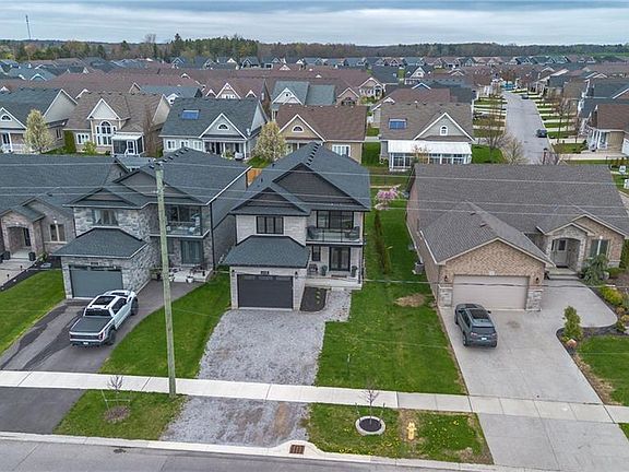 Lakeview from this 3 year old two story home on New Lakeshore Road. Enjoy the breeze and the skies, birds and sunrises from the second floor family room glassed in exterior deck . Lots of upgrades in this gorgeous home of over 2400 sq ft. Another 1300 sq ft potential finished space in basement area. Kitchen offers custom cabinets in crisp white with quartz counters and 8' island. Pot lights, high end stainless appliances , gas stove and custom walk in pantry. Main floor laundry with access to large garage. Main floor 2pc bath. Gas fireplace in open concept living room . Big dining room with plank focus wall. Custom wider oak stairwell features open oak and steel railing to second floor family room with entertainment centre and custom bar area. Three bedrooms, primary with gorgeous ensuite . Basement level is framed in for future development, recreation room, kitchen, bay and bedroom. Finished wine cell. Back yard deck off great room. shed 10x 10' is 60 amp wired. 153' deep yard. Exterior front done in Shadow Lake stone. Port Dover on Lake Erie is a great place to call home! Beachfront, great places to eat, a friendly community! Roof shingles upgraded, Faucets are all Riobel. Garage is 13'6 x 21'2. pot lights throughout. Upgraded beautiful engineered wide plank flooring throughout . Dishwasher is Bosh, all other stainless appliances are Frigidaire Professional series. Upgraded light fixtures. Tankless hot water heater. Gas Linear Fireplace in living room. Basement is all sprayfoamed and framed in for bath, rec room, bedroom etc. Custom wine cellar. Deck off living room.