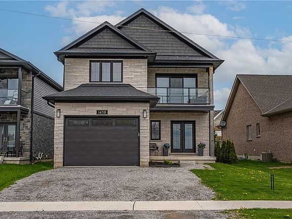 Lakeview from this 3 year old two story home on New Lakeshore Road. Enjoy the breeze and the skies, birds and sunrises from the second floor family room glassed in exterior deck . Lots of upgrades in this gorgeous home of over 2400 sq ft. Another 1300 sq ft potential finished space in basement area. Kitchen offers custom cabinets in crisp white with quartz counters and 8' island. Pot lights, high end stainless appliances , gas stove and custom walk in pantry. Main floor laundry with access to large garage. Main floor 2pc bath. Gas fireplace in open concept living room . Big dining room with plank focus wall. Custom wider oak stairwell features open oak and steel railing to second floor family room with entertainment centre and custom bar area. Three bedrooms, primary with gorgeous ensuite . Basement level is framed in for future development, recreation room, kitchen, bay and bedroom. Finished wine cell. Back yard deck off great room. shed 10x 10' is 60 amp wired. 153' deep yard. Exterior front done in Shadow Lake stone. Port Dover on Lake Erie is a great place to call home! Beachfront, great places to eat, a friendly community! Roof shingles upgraded, Faucets are all Riobel. Garage is 13'6 x 21'2. pot lights throughout. Upgraded beautiful engineered wide plank flooring throughout . Dishwasher is Bosh, all other stainless appliances are Frigidaire Professional series. Upgraded light fixtures. Tankless hot water heater. Gas Linear Fireplace in living room. Basement is all sprayfoamed and framed in for bath, rec room, bedroom etc. Custom wine cellar. Deck off living room.