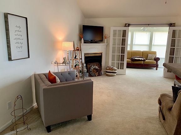GREAT PLACE TO CALL HOME! Enjoy maintenance free living in this end unit. Open floor plan with cathedral ceiling in living area, gas fireplace, all appliances are included, sunroom has access from the master and living area, walk in closet, 2 car garage. End unit offers some extra space. Owner has loved living here but the time has come to move. Great opportunity for someone looking! Homes sell very quickly in this neighborhood, so don't miss it.
