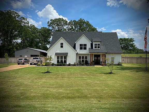 This is a custom built modern farmhouse with 5 bedroom (one over garage can be used a bedroom or bonus room/3 full baths situated on 1.5 acres. 2830 sq ft of living space with a 2 car garage. You walk in to a large open foyer with sweeping ceilings and a black metal staircase. Downstairs you have formal dining, kitchen with stainless steel appliances and custom built in pantry wall with pantry closet as well, eat in area, laundry, 2nd bedroom with its own full bath, master bedroom with tray ceiling, recessed lighting and huge master bath. Double sinks in bathroom with shiplap wall, upgraded custom cabinetry, granite, tile, water closet, stand alone soaking tub, glass enclosed shower and large walk in closet with closet system. There is a great room with 20ft cathedral ceilings, fireplace with shiplap and it's open to the beautiful kitchen with custom cabinetry, large floating shelves with shiplap walls, a custom vent hood and beautiful back splash. Lower cabinets have pull out storage systems. Upstairs you'll find 3 additional bedrooms. One bedroom with it's own access to bathroom sink area and the other bathroom area has double sinks. There is a large bonus area room as well. Great for 5th bedroom, craft room, game room, office or another gathering space. All bathrooms are tiled. Tub and shower areas are tiled to the ceiling and granite counters. Flooring, lighting, cabinetry and granite is upgraded throughout home. All doors are custom painted black as well. Flooring on bottom level is luxury vinyl plank (LVP), tile in bathrooms/laundry and bedrooms are carpeted. Outside you have a large fenced in area of the backyard with custom cedar privacy fencing. Back patio has extended concrete outside and has a custom screen enclosed porch with black metal awnings for keeping out the elements. There is a TV/cable outlet installed for easy TV installation. The gems of the backyard are the 16x16 pergola firepit area with vaulted metal ceiling and the 40x50 (2000sqft) workshop complete with electric (110/220), multiple 10ft rollup doors and has a mounted heater. It features a separate hobby room and lean to as well. House is wired for a generator. Concrete driveway pad has been extended for more parking. Including workshop, home has well over 100K in upgrades. The neighborhood is wonderful, peaceful, quiet with friendly people around. THERE IS NO HOA.