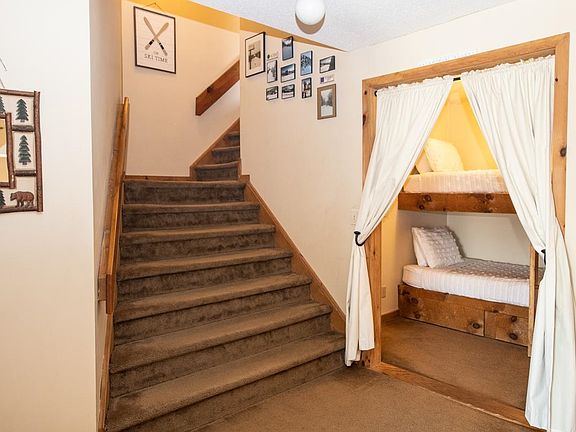 Okemo Trailside 23-BL Large One bedroom unit steps to the trail with easy access to the community amenities. Open kitchen design with updated appliances and countertop, separate dining room, sunken living room with woodburning fireplace, bedroom, bath, laundry room with side by side washer and dryer, and airlocked mudroom with rough sawn pine paneling.