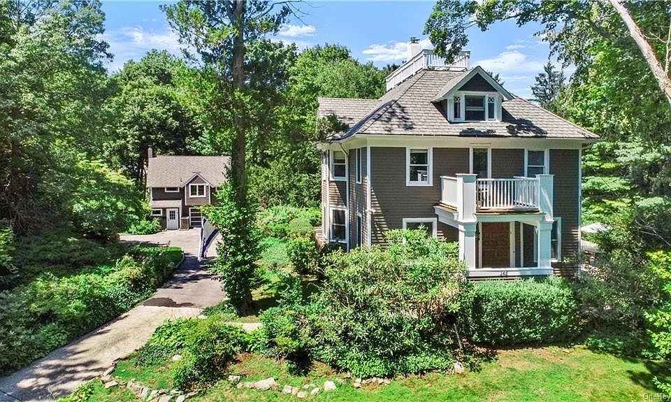 Amazing Classic Colonial with unique .92 acre property, natural setting with total privacy in the heart of Old Edgemont. The azure pool surrounded by granite patio. Come enjoy the resort lifestyle at your own home. The Main House with over 4000 square feet of living space including the basement recreation area. The Chef's Kitchen with sliders to the grand patio and gas BBQ perfect for entertaining on warm summer evenings. A formal dining room, living room with gas fireplace grand entry foyer and powder room complete the 1st level. The Primary Suite with vaulted ceilings and veranda overlooking the pool grotto area, two additional bedrooms on the second level, ensuite guest bedroom and hall bath. The third level loft bedroom is spacious, sunny charmer. The Guest Cottage can be your private getaway, home office also perfect for extended family or nanny suite. Close to School, 5 min walk to Scarsdale train and village.