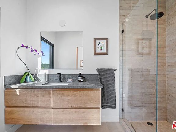FURNISHED 1 BED + OFFICE, 1 BATH. Walk to Topanga village from newly remodeled 1 bedroom plus office downstairs apartment with views of canyon, surrounded by native flower garden and peaceful ranch. Huge bedroom with ensuite bathroom, natural light, canyon views and slider to private patio. Large extra room for office, living room with book shelf and private entry. Small kitchenette and hallway dining. Laundry adjacent and spacious parking with EV hookup. Looking for quiet professional for private lower level of recently remodeled modern house. Do not disturb current tenant, showing by appointment only.
