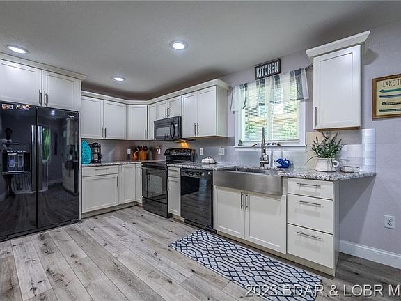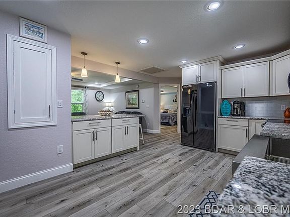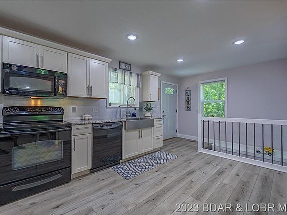 90% Rebuilt LkFrt Hm, Greenview Area. Cove Location, 80ft LkFrt. 34 Mile Marker, Osage Arm. 2022-23 Hm Gutted/Complete--Mostly New-Turnkey! Prepare to be impressed! Move-in Ready! 1948SqFt 3-4Bdrms/3Baths. 4th Bdrm non-conform'g (sm window). LivRm w/coffered ceiling, frpl & added a FamRm, Brand New Kitch w/Lrg Island, Granite Counters, Soft Close Cabinets, SS farm sink. Natural Light. Laundry/Mech'l/Stg Rm, Walkout Finished Lower Level. Fairly level grassy LkFrt Yrd, New Lkfrt Deck, Patio & Firepit. New Roof, Larger Windows, Baths, Plumbing, Electric, Drywall, Flooring, Quality Siding, Security System in place, etc. Pride of Ownership. Great Finishes thru-out. 14x40 2Car Garg+Extra Prkg for 3-5 more cars, 1Well 14x24 Wood Dock (dredged under dock). Very Quite Area w/ abundance of Wildlife & Fish. Spring-fed cove=great fishing. The Pros fish this cove. CommunityH20, BoatRamp, Trailer Stg Area. Just minutes by Boat to CaptainRons, Bulldogs, TheFish, Marina65. Must See Extra Feature Sheet