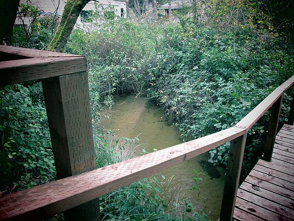 Private 65' x 170' wooded lot, in gated park with Munsel Creek frontage. Amenities include a clean/maintained 1993 Travel Supreme 30' trailer w/dining and living room slide out; oak flooring & cabinets; also vinyl flooring & carpeting; new toilet & electric fan vent; skylight in shower/tub enclosure; cable ready TV, internet & phone; lots of inside & outside storage; new deep cell RV battery; full 120 gal. tank (Amerigas lease); Hi-power electricity. Property includes a well-built Ramada over trailer w/ wood & metal roofing, including the patio & decking; unfinished storage shed with electricity & metal roof; fenced yard for dogs; stairway leading down to 'gazebo' by Munsel Creek; bridge leading to large back portion of lot; very private and desired location in Coast Village gated community.