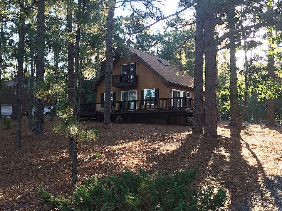 Great water view home containing 3bd and 2ba in the gated community of Seven Lakes North. This charming house has a large deck wrapping half the house with a second story balcony all overlooking Lake Echo. The house includes a large living room, with gas fireplace and three good size bedrooms including the master on the ground floor. The Seven Lakes community includes a large pool with diving board, huge park with basketball and tennis courts, seven community lakes with multiple public access points and free horseback riding at the local stables. Security Deposit based on credit check. Call owner to discuss specifics on pets.