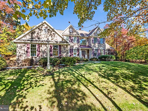 Stunning stone 2-Story in the very popular Quaker Hill Estates development with 4 bedrooms, 3 full and ½ baths on a gorgeous 1.58 acre mostly wooded lot! This beauty will surely impress with a very inviting covered front porch which leads into a 2-story foyer with hardwood flooring. The sitting room has crown molding and hardwood flooring and flows into the living room with is adorned with a beautiful tray ceiling with recessed lighting and completely surrounded by walls of windows for tons of natural light which warms the room nicely. The formal dining room has amazing mural painted walls, wainscoting and chair rail, as well as crown molding, tray ceiling and hardwood flooring. Cooking will be a breeze in this chef’s kitchen with center island with storage and seating, upgraded countertops, double oven and cooktop, recessed lighting, butler’s pantry and there is a convenient breakfast area for your morning coffee. The large sunroom is right off the kitchen and allows for views of the rear yard and comes with outside access to the rear patio, vaulted ceiling and hardwood flooring. The family room has a vaulted ceiling, rear staircase to the upper level, propane fireplace with mantle, ceiling fan and recessed lighting and there is a main floor office, powder room and laundry room with tile flooring and laundry sink. The second level of this home holds the very spacious primary suite with a deep tray ceiling, large walk-in-closet and primary bath with a large stall shower, corner soaking tub, double vanity and tile flooring. Two additional bedrooms with large closets share the Jack-n-Jill bath, with a double vanity and linen closet and there is an additional large bedroom and hall bath. The lower level is ready to be finished off for additional living space and is plumbed for a bathroom and has plenty of storage area. Outside entertainment is easy with a large paver patio and room to roam. There is a large 3-car side entry garage, large driveway for plenty of parking, central air and a water softener. Great location provides easy access to all major highways. Come take a look before it’s gone!