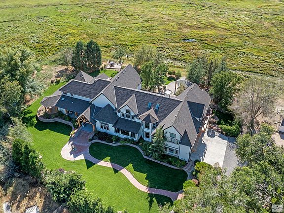 Welcome to Tail Water Ranch—your recently renovated modern farmhouse sanctuary on 10.89 water-righted acres. Step into an open concept great room with a soaring two-story ceiling and stone fireplace. The adjacent chef's kitchen and indoor/outdoor bar make entertaining effortless. The main-floor primary suite offers a vaulted ceiling, fireplace, and spa-like bath. Nearby, find a gym with a large steam sauna., Upstairs, discover a junior primary, two bedrooms with en-suite baths, a home office, game room, and a state of the art home theater. For equestrian enthusiasts, a new 12-stall barn and a 120' x 160' arena await. Included in the square footage and bedroom count is a 1 BR 1 BA guest apartment. Location is key: enjoy country tranquility while being minutes from shopping, the airport, and Lake Tahoe. Experience the perfect blend of luxury and equestrian life at Tail Water Ranch.