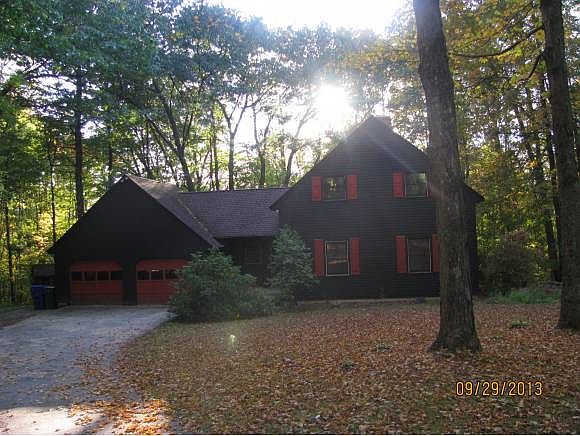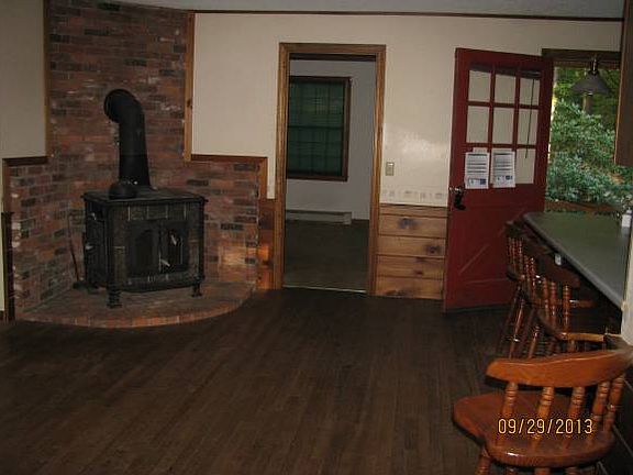 Country Cape with 2+ bedrooms, 1.5 baths and many extras! Open concept kitchen with woodstove. Sunroom with hot tub and attached deck. Formal living room with wood burning fireplace. First floor office or third bedroom. Basement is finished with another woodstove. Lovely stone wall in front of property and the lot is private and wooded. This is a HomePath property and qualifies for HomePath financing with as little as 5% down!