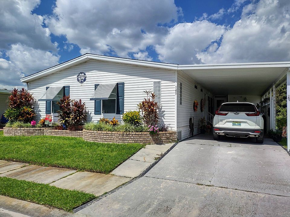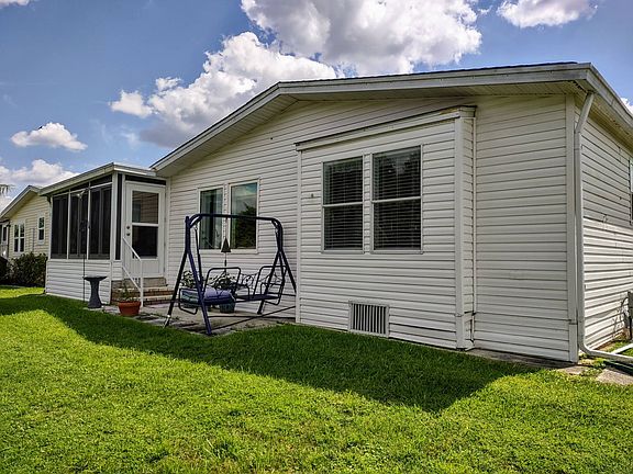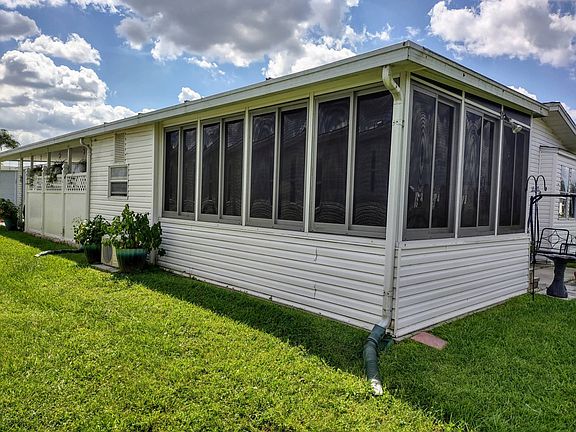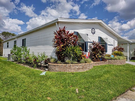 Spectacular view of Palm Lake and the island (inhabited by hundreds of migratory year-round coastal birds) can be found in the premier 55+ community...The Gardens! Enjoy this amazing site from the large DEN-with brand new picture windows, spacious eat-in kitchen, living room, and the 16'x12' lanai-featuring acrylic side to side windows plus a mini-split AC (2020)! This UNfurnished 1672 SF Jacobsen has 2 generous sized bedrooms...BOTH with walk-in closets, as well as a separate laundry room. More highlights are updated flooring, new AC (July 2021), 6 new ceiling fans & new dryer (2018). Close to the Resort style clubhouse & Olympic size swimming pool! The ballroom hosts a variety of events such as dinners, dances, bingo, entertainment and more. There is a state of the art fitness center, resident outdoor kitchen, fire pit, jacuzzi, billiard room, library, horseshoes, , shuffleboard, pickleball and tennis courts. A well maintained community that is pet friendly. 2022 lot rent is $891, comes with lawn mowing and trimming, Spectrum internet and cable plus 2 HD boxes and access to all the wonderful amenities! All listing information is deemed reliable but not guaranteed and should be independently verified through personal inspection by appropriate professionals. Integrity Mobile Home Sales cannot guarantee or warrant the accuracy of this information, measurements, or condition of any property. Measurements are approximate. Lot rent is subject to change