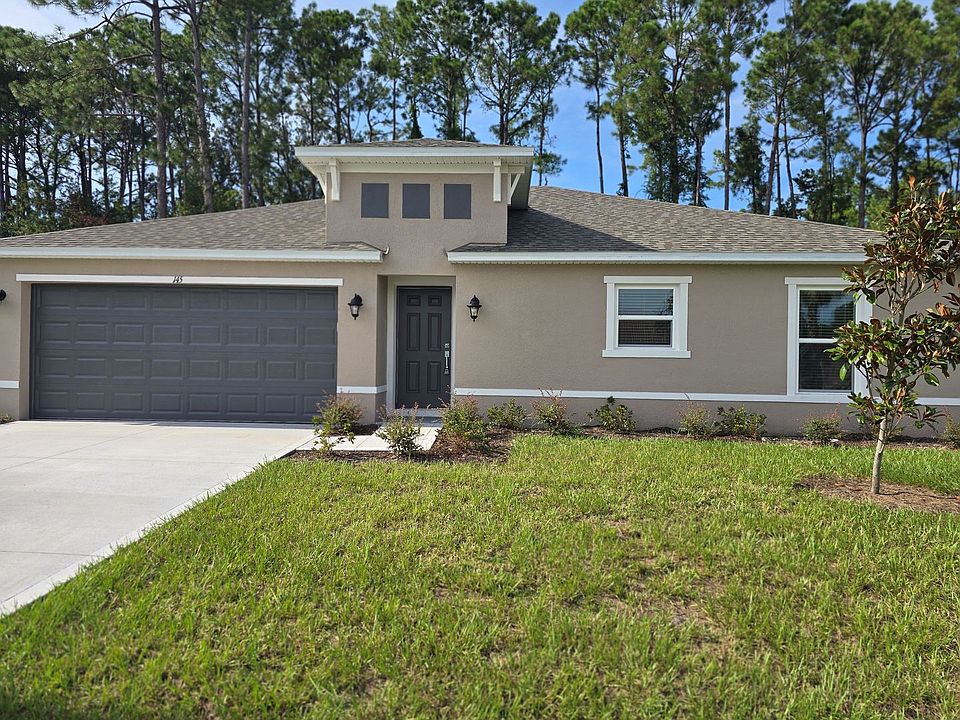 Welcome to the Brand New Home in the beautiful Palm Coast, FL! This stunning property boasts three spacious bedrooms and two full bathrooms, perfect for comfortable living. The open floor plan, complemented by vaulted ceilings, creates a sense of grandeur and space, making it an ideal setting for entertaining or simply relaxing. The kitchen is a chef's dream with its granite countertops and kitchen island. The luxury vinyl plank flooring throughout the home adds a touch of elegance and is easy to maintain. Step outside to the covered porch, a perfect spot for your morning coffee or evening relaxation. This brand new home is not just a house, it's a lifestyle. Experience the best of Palm Coast living in this exquisite property.