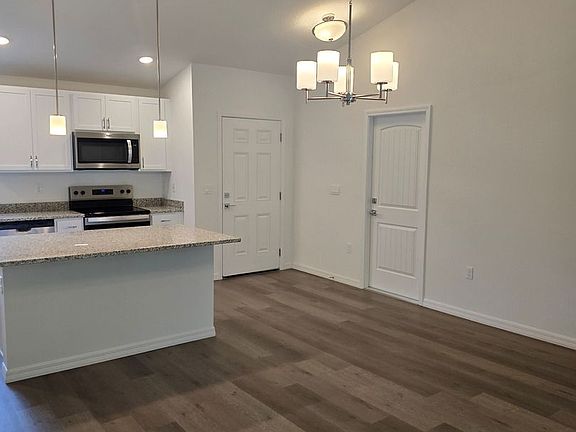 Kitchen islandGranite countertopsCovered porchOpen floor planVaulted ceilings