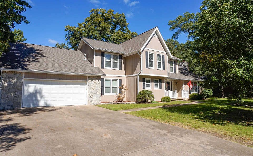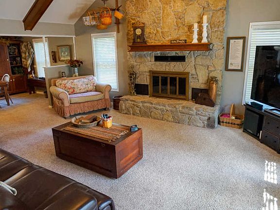 Lots of room in this 5 bedroom home plus office / 4 seasons room just across the street from the clubhouse and pool. Major updates and remodeling have been done to the kitchen and baths including all new kitchen cabinets, tile backsplash, and stainless appliances. A charming stone fireplace highlights the open concept living/dining room. Located on a peaceful, tree-lined street with a private backyard . This home has lots of extras including a workshop/ exercise room off the garage (a great spot for your golf cart), spacious mudroom, 3 car driveway and large storage shed. Enjoy the neighborhood trails and frisbee golf. All this in desirable Carl Junction school district and 100% RD loan eligible.
