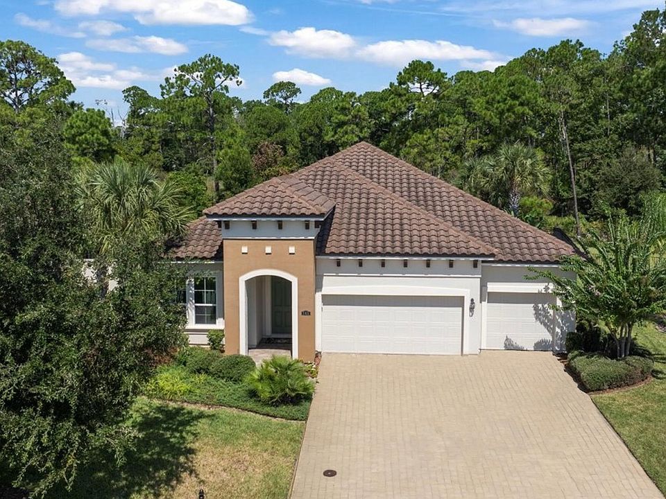 Welcome to 145 Paranza Trace, a beautifully appointed 3-bedroom, 3-bath Spanish-style pool home in the exclusive, gated community of Madeira. Tucked away on a quiet cul-de-sac with peaceful preserve views, this single-level residence combines refined finishes with thoughtful upgrades for a lifestyle of comfort and elegance. Step inside to find soaring ceilings, crown molding, and coffered ceiling accents that set a graceful tone throughout. The gourmet kitchen is a true showpiece, boasting updated Bosch stainless steel appliances, a walk-in pantry with built-in cabinetry, and a dedicated coffee and wine bar with wine cooler. Rich cabinetry and polished surfaces make the space both functional and inviting, the perfect heart of the home. The spacious primary suite offers a private retreat with a spa-inspired bath complete with towel warmer and a large walk-in closet outfitted with a custom shelving system. A guest or in-law suite with bay window provides a welcoming haven for visitors, while flexible spaces adapt easily to your lifestyle. Outdoor living shines here. Through French doors, an extended screened paver lanai opens to a sparkling saltwater pool and a fully equipped outdoor kitchen featuring a Parker gas grill. Surrounded by lush landscaping and a fully fenced yard backing to a wooded conservation area, this space is ideal for relaxing, entertaining, or dining al fresco. Practical features enhance everyday living, including a 3-car garage with epoxy floors, hurricane shutters, an irrigation well, and a laundry room with cabinetry and utility sink. Every element has been designed for both beauty and function. Residents of Madeira enjoy access to the private Residents Club, complete with resort-style pool, fitness center, clubhouse, and scenic walking trails that wind through tidal creeks and preserved wetlands. Located just 3 miles from historic downtown St. Augustine and 4 miles to the beach, you will find the perfect blend of natural beauty and vibrant coastal living.