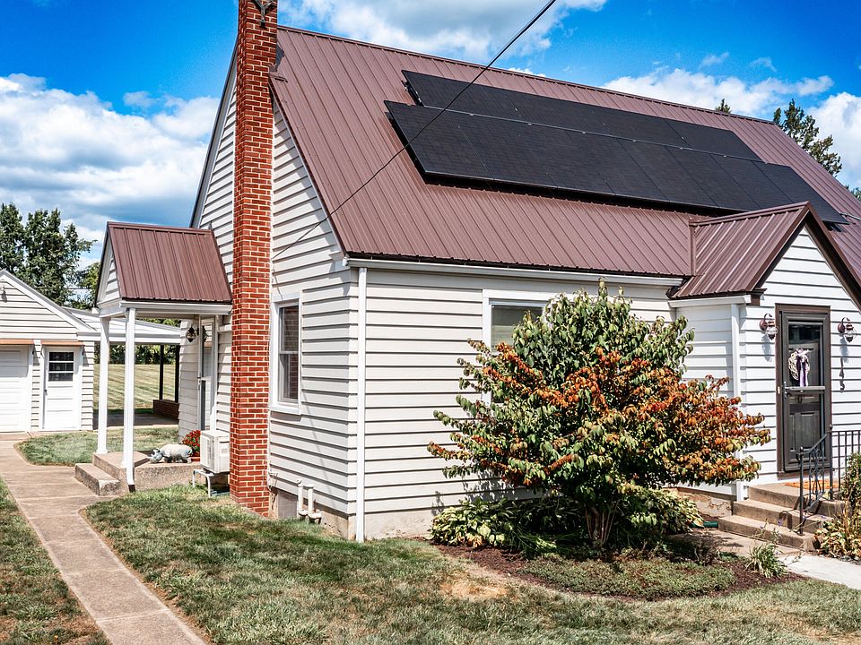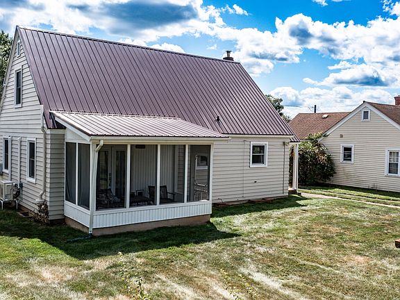 Welcome to this charming Cape Cod set on a spacious double lot! Step inside to gleaming hardwood floors, curved archways, a beautifully updated kitchen with modern appliances, and a flexible 3-4 bedroom layout. French doors lead to a private rear porch, perfect for morning coffee or evening gatherings. Enjoy peace of mind with replacement windows, a newer metal roof, and seller-owned solar panels for energy savings. A full basement offers storage and potential, while the detached garage with patio/carport adds convenience and outdoor living space. A well-maintained home blending character, updates and sustainability. Don't wait, schedule your appointment !