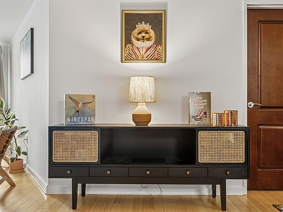 145 Park Place is everything you could ask for in a quintessential Brooklyn living experience. This spacious one bedroom in Park Slope will welcome you with a quaint foyer upon your arrival. Upon entering the main space you are greeted by a unique open floor plan that immediately beckons a breath of gratitude to be home. This open floor plan guides you to various options for end use. The corner to your left is a perfect home office sanctioned off by the column separating the foyer and main space without feeling enclosed. Large windows allow generous light with central air cooling units installed just below both to allow adequate circulation. A dining room large enough to fit a table of eight. Adjacent is the kitchen with a unique design of porcelain tile in a wide plank herringbone pattern. Stainless steel appliances that include microwave, dishwasher and new stove. Hardwood flooring throughout, presented in mint condition. Adequate cabinet space with solid dark oak cabinets and modern LED flush mount lighting fixture. Bathroom has a double vanity and jacuzzi tub with various settings for the jets. Stone floors and stone-lined shower in mint condition, giving a spa-like experience. Brand new Boche w/d. A large bedroom tucked away for quiet enjoyment is the perfect oasis to end and begin your day. Amenities include a full-time doorman, super, private storage, a bicycle room, and on-site parking. Not one but two enormous outdoor spaces. The first is the inner courtyard that is equipped with grills and a children's play area or take the elevator to the brilliant roof deck which has water views and the city skyline, a wonderful retreat for all residents. 145 Park Place is a true and rare find! Don't miss out.