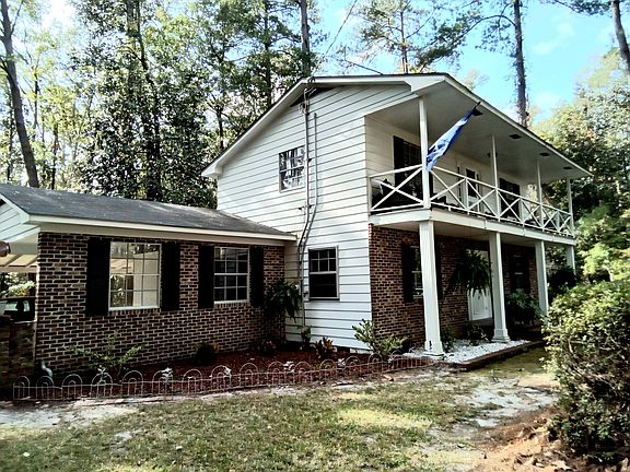 Welcome to this captivating 2104 sq. ft. Traditional 2-Story home. This home offers 3 bedrooms, 2.5 bathrooms. Built with solid craftsmanship in 1964 on 2.36 acres of treed land. It is estimated that approximately 1/4 acre of the land is cleared, which is ideal for an outbuilding, pool or storage of recreational vehicles. The property is abundantly graced with Magnolia Trees, Saw Palmetto & various other species. This endearing home offers a 2-story veranda expanding the entire length of the home offering a relaxing & delightful space to enjoy. The bricked backyard patio is an additional outdoor inviting space. Inside, you will find an expansive Carolina room with spectacular views & a built in bar area with an adjacent powder room.The kitchen offers bountiful storage with an additional wall of built in cabinetry, a new sink & disposal. The main level also features a cozy & quaint family room with brick fireplace & built-in side shelving, a considerable sized dining area ideal for entertaining, a formal living room that is currently being used for office & exercise space & a master ensuite with walk-in shower. Throughout the family room/dining area/kitchen you will discover the appealing & well-preserved Rustic Quarry tiled floors. Upstairs, you will find 2 additional spacious bedrooms with picturesque views, plenty of closet space and a full bathroom with built in cabinetry. From the upstairs you will access the 2nd-story endearing veranda, another remarkable outdoor space to embrace. You will truly appreciate the abundant privacy, peaceful neighborhood, striking views & convenient location of this home. The elementary school is 2.0 miles from this location with the middle school being 2.4 miles & the H.S. at 0.6 miles. A new state-of-the-art H.S. will be open for its students for the 2025-2026 schoolyear at 3.1 miles. This breathtaking property is also just a 10 minute drive to Lake Warren State Park! Recent updates include: HVAC system installation 10.2024, Roof 2018, break box 2018, outlets 2023, freshly paint and new toilets.