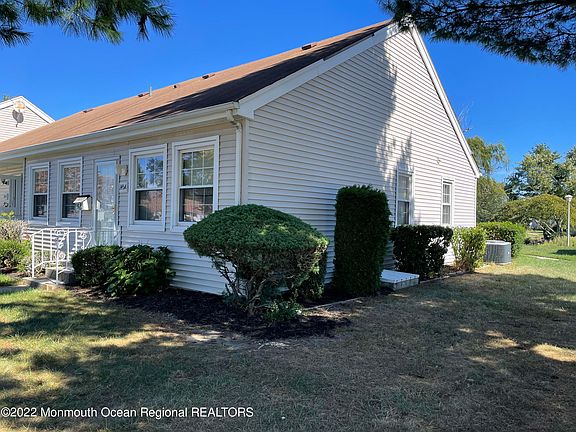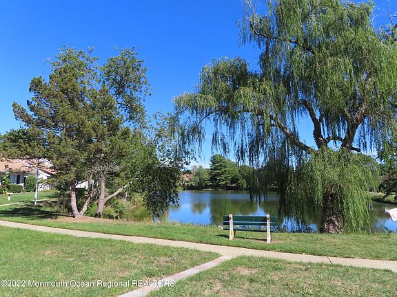 Premiere location - this home is an end unit and also backs onto the pond for peaceful views from your sunroom! Enjoy community living with a clubhouse, pool and new pickleball courts. Just minutes from the conveniences of shopping along Route 9 and a bus commuter parking lot. This desirable model offers a floor plan featuring a large Living Room / Dining Room combination, 2 spaced out bedrooms and plenty of natural light through the extra windows being an end unit. The sunroom / den is heated and has sliding glass doors on 2 sides plus a ceiling fan to enjoy the breeze on summer nights. Updates include laminate flooring in the kitchen and rain glass shower doors.