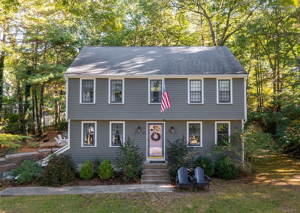 Desirable Blackmount location! Welcome to this inviting 4-bedroom Colonial set in an established neighborhood close to beaches, top-rated schools, Marshfield Center, and Route 3 for effortless commuting. The heart of the home is the open kitchen/dining area, featuring stunning quartz counters, a large center island, and ss appliances. A step-down family room has a vaulted ceiling, skylights, fireplace and sliders to the deck and patio offers a bright, airy space for relaxing or entertaining. The lg. living room is freshly painted and has newly installed wainscoting, adding charm and character. Hdwd floors run thru out the home. Upstairs you’ll find generously sized bedrooms with a flex. floor plan. The yard has a refreshing outdoor shower, perfect after a day at the beach with lush landscaped grounds. Under 2c gar., a newer furnace, a walk-up attic for easy storage. This is a highly sought-after neighborhood, homes don't come up often. Don’t miss this opportunity!