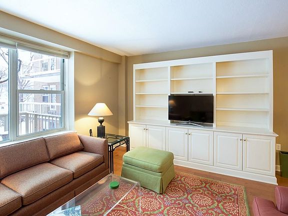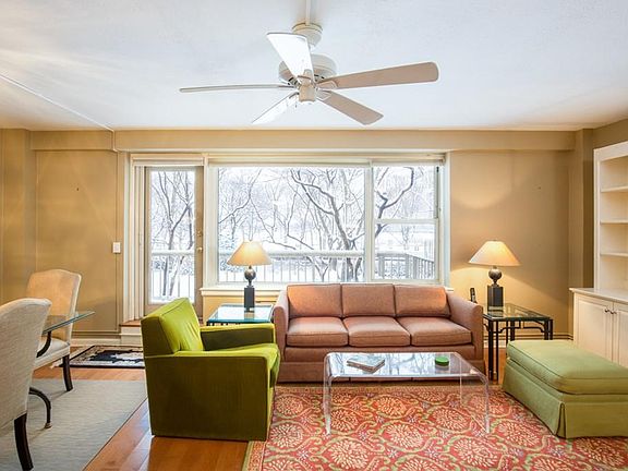 Rarely available at River House.....a 2 bedroom, 2 bath unit. Located on the second floor of a full service style impeccably maintained building with 24hr. doorman, this unit has views of the Esplanade from all rooms. Gracious L-shaped foyer with coat closet leads to a spacious, attractive living / dining room with built-in bookcases and cabinet storage, glass door to pvt. balcony overlooking a beautifully landscaped garden with views of the Esplanade and river views in the distance. Large open and renovated kitchen with cherry cabinets, granite countertops, stainless steel appliances and counter seating. Master bedroom with large closet, en suite bath and window overlooking garden. 2nd bed with double closet and door to another private balcony. A 2nd bath is located off the foyer. There is a good size utility room with laundry and a double storage unit is in the basement. One garage parking (space #13) in bldg. available for purchase at $225,000. Pets allowed with Trustee permission.