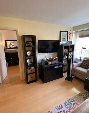 Spacious River House one bedroom apartment on 6th floor in excellent condition. Wood floors throughout, modern kitchen, d/d pass-thru to dining area. Large living room with east facing picture window and door to private balcony overlooking beautifully manicured landscaped common garden. Great closet space, dressing area, tile bath with tub/shower. Private storage in basement. Common laundry with card system, Amazon Hub package pick up system in building. Bike room ($100/yr charge). 24hr. security at the front door. Impeccably maintained building with superintendent on premises. Available 9/1.