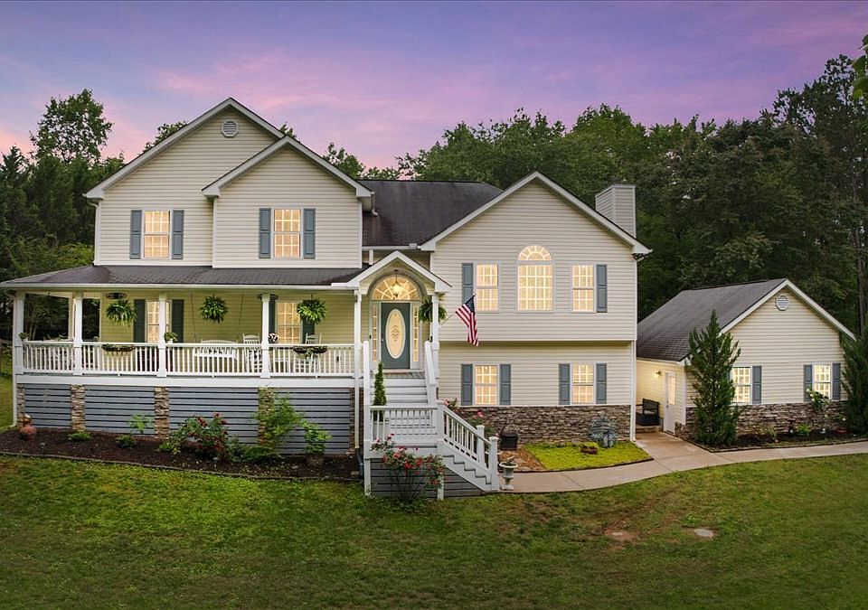 Stunning 4BR/3.5BA retreat on 2 private acres with in-ground, saltwater pool. Notice the beautiful details the moment you step inside with refinished hardwood floors throughout (2024). The eat-in kitchen is a chef's delight with stone countertops, a breakfast bar, pantry, and LG appliances. The open-concept dining area comfortably seats 12+ and flows into a fireside family room, perfect for entertaining. Enjoy dual primary suites offering flexible living: the main-level primary suite includes a walk-in closet, sitting room, and en-suite bath with double vanities, separate soaking tub, and walk-in shower. The finished basement features a second full primary suite with a large bedroom, walk-in closet, and bathroom with double vanities and a spacious layout-ideal for guests or multi-generational living. Step outside to your private oasis and enjoy your private pool (new vinyl liner in 2023), a screened porch, and a deck overlooking a fully fenced backyard. Additional features include a propane hookup for the fireplace and outdoor grill, a 2-car detached garage, two water heaters, and updated HVAC systems with UV filtration. Freshly painted and truly move-in ready!