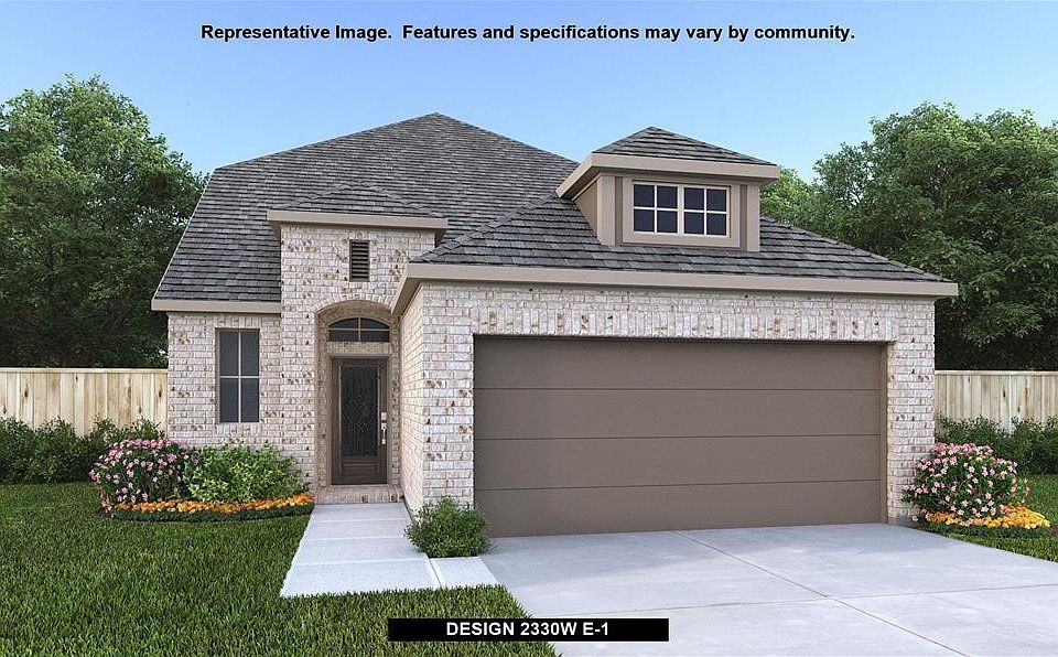 Entry leads to open kitchen, dining area and two-story family room with wood mantel fireplace. Kitchen features walk-in pantry, generous counter space and inviting island with built-in seating space. First-floor primary suite includes 10-foot ceiling. Double doors lead to primary bath with dual vanities, separate glass-enclosed-shower and two walk-in closets. A game room and two secondary bedrooms are upstairs. Covered backyard patio. Mud room off two-car garage.