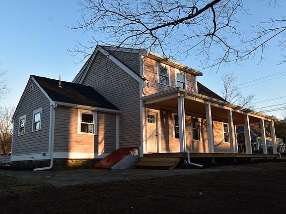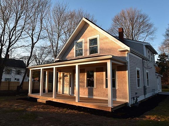 You'll fall in love with this beautiful, Greek Revival Farmhouse~Completely rebuilt from the footings up~new septic system, wiring, plumbing, cedar shingles, pvc exterior trim, roof, windows, all hardwood oak flooring with tile baths~wide open kitchen with white shaker cabinets, island and quartzite counters, stainless steel stove, dishwasher & microwave~Open concept floor plan flows throughout the first floor with warm foyer~ Navien combi heating system/water heater~ ~Fabulous, covered, wrap around farmers porch is perfect for entertaining and relaxing~The patio overlooks a welcoming acre of backyard, tasteful colors, an abundance of charm and warmth! Easy access to major routes and shopping~
