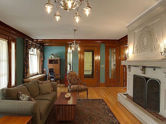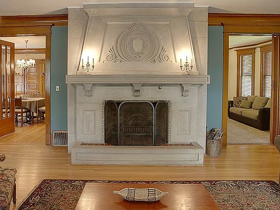 So much history in this craftsman style home designed by Howard Burr in Frank Lloyd Wright's Prairie style. Some of the great features of this 5 bedroom brick and stone home include the following: crown molding with picture rail, 10' ceilings with 8' doors throughout the main level, extraordinary lime stone fireplace in the great room with hardwood floors, 4 seasons sun room with built in oak book case, formal dining room, kitchen has heated tile flooring with custom kitchen sink and cabinetry to match original woodwork plus modern appliances have been added (refrigerator, stove, dishwasher, microwave), main level bathroom has been preserved to maintain its historical character, laundry hook ups on the main level and lower level, original quarter-sawn oak woodwork and cabinetry throughout the home, beautiful leaded glass windows, electrical system has been upgraded to 200 amp service, the clay tile roof on the home was restored in 1999 with the help of a State Historical Society of Iowa HRDP Grant. Expected life: 50 years. Take the time to view the virtual tour to see just how impressive this historical home really is, you won't be disappointed!