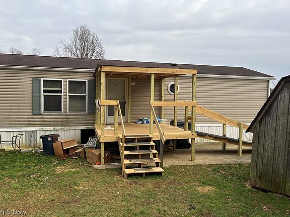 Don't miss this home located in the South Zanesville area close to shopping and under 10 minutes from I-70. This is a three bedroom two bath mobile home. It is a larger unit at 80x16. The living, dining, kitchen, and laundry area are large and have the open concept. One end offers two bedrooms and a full bath. The opposite end has the master suite and full master bath. There is a 10x12 storage building that will stay. Enjoy the brand new deck off the front when its nice out. Lor rent sis $290 per month and includes trash and sewer.