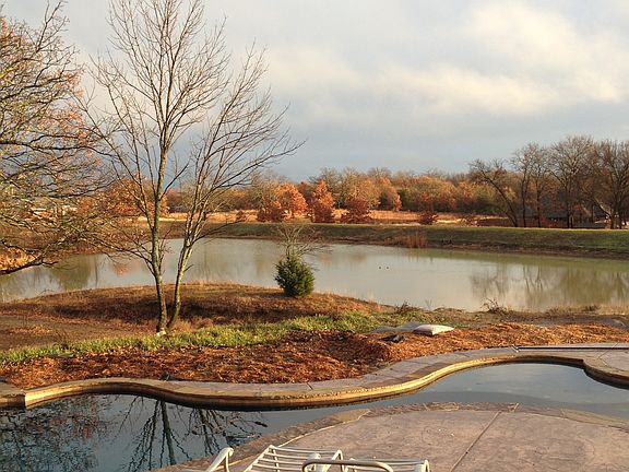 Custom home on approx. 10 plus private park acres with fish pond and territorial views. Amazing 750 sq ft master suite with gas fireplace. Bright natural light and views throughout, high ceilings and warm interior colors complementing hand-scraped hardwood floors. Chef's kitchen w/ side-by-side refrigerator, dual fuel stove/range, farmhouse copper sink, island prep sink, walk-in pantry and granite counters. Travertine tile, heated master bath floor, hand troweled custom painted walls. Custom salt water pool with stained and stamped decking. Established landscaping. Engineered slab foundation and designed for low energy consumption. Additional acerage and shop available. Contact seller directly for possible terms. Oklahoma real estate brokers please contact Mona Campbell Real Estate.
