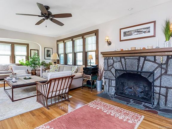 Welcome to the heart of Fairfield center 1920's Jazz Age solid construction features original gracious layout, archways, chestnut trim, hardwood floors and fieldstone fireplace (converted to gas, along with important updates including new Marvin windows, professional landscaping, gas heat, updated kitchen, beautiful bathroom with claw foot soaking tub and walk-in shower. Bonus space includes walk-up attic, full unfinished basement, 2-car garage with storage loft. Lovely patio and backyard completes this package of timeless character and easy living. Walk to the Metronorth train platform in under ten minutes, as well as numerous restaurants, library, post office and gazebo for concerts, farmers market & picnics. Stroll to Penfield Beach via the Old Post Road historic district. Walking distance to elementary, middle and high school. Burn calories instead of gasoline from here