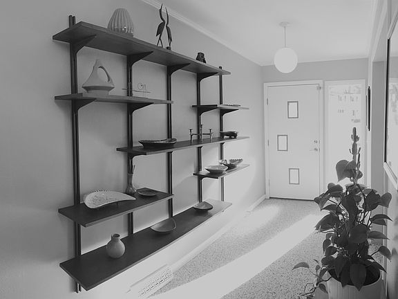 A piece of California right in Chesterfield! Burton Duenke built Mid Century modern with all the appropriate updates. Beautiful epoxy pebblestone floors throughout. New interior paint and trim. Kitchen has solid cherry cabinets, granite countertops and Kithen Aid stainless steel appliances. Master bathroom has been updated with cherry cabinets, Kohler and Hansgrohe fixtures, adult height marble countertop with double sinks, new tile, heated floor, floor to ceiling glass steam shower with rain head and shower wand. Completely redesigned HVAC system upgraded in 2010. All new exterior doors, including garage doors with backup battery operated openers. Low maintenance landscaping with heat tolerant zosia grass and large mature trees for added shade.
