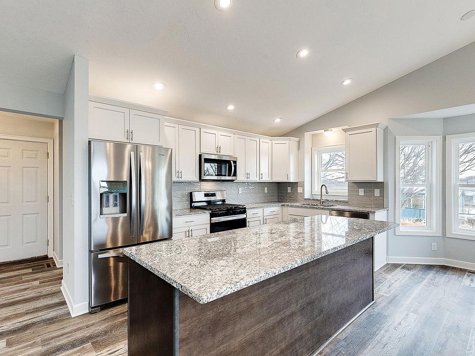 This home was originally built in 1992 and was homestead on acreage. this land was recently developed into Elko New Market's newest neighborhood, and the developer wished to keep this homes legacy and upgrade both the interior and exterior to meet the new neighborhoods standards. All surfaces inside and out have been meticulously updated and thoughtfully upgraded. The home has all new roof, exterior paint and siding, Pella windows and sliding doors, driveway, and is professionally landscaped. The interior is all new, every wall and ceiling has been painted, new trim and doors installed, with all new LVP, LVT, and carpet. The kitchen features brand new stylish cabinets, counters, tile backsplash, and stainless steel appliances in an open floorplan designed for entertainment. The finished lower level offers a wet-bar with new cabinets, counters and backsplash for an additional entertainment space, adjacent to a walk-out patio. All baths have new vanity cabinets, granite counters, sinks, toilets, and light fixtures, and the owner's bath has a new porcelain tile shower. In short this is virtually a brand-new home meeting current code and energy efficiency standards all with an amazing new look. And don't let the 2 stall garage door fool you, this garage is larger than most 3 stall garages.
