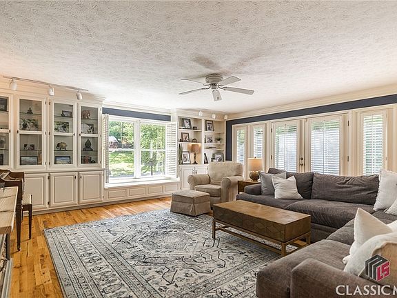 As you step inside, you'll notice the newly installed LVP flooring and hardwoods throughout the home, replacing all carpet. The home features a formal living room and dining room with built-in cabinets, perfect for displaying your favorite items. The rear of the home offers a bright and airy eat-in kitchen and den space, complete with sun soaked windows overlooking the backyard. The kitchen has updated cabinetry and granite countertops, while a large laundry/storage room is conveniently located off the kitchen.