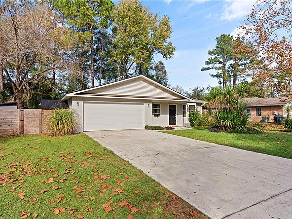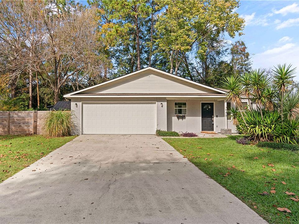 Discover your serene retreat in this charming 3-bedroom, 2-bathroom stucco home nestled in the heart of Kingsland! Set on an expansive 1/3-acre lot in the coveted Royal Acres subdivision, this residence boasts undeniable curb appeal with lush grass and tropical landscaping. A wooden privacy fence encloses the spacious yard, creating a haven for relaxation and entertainment.