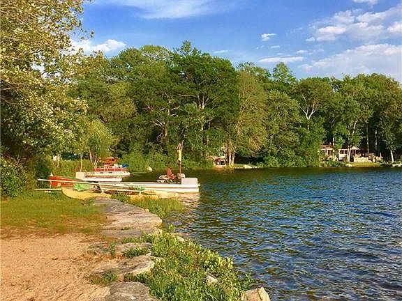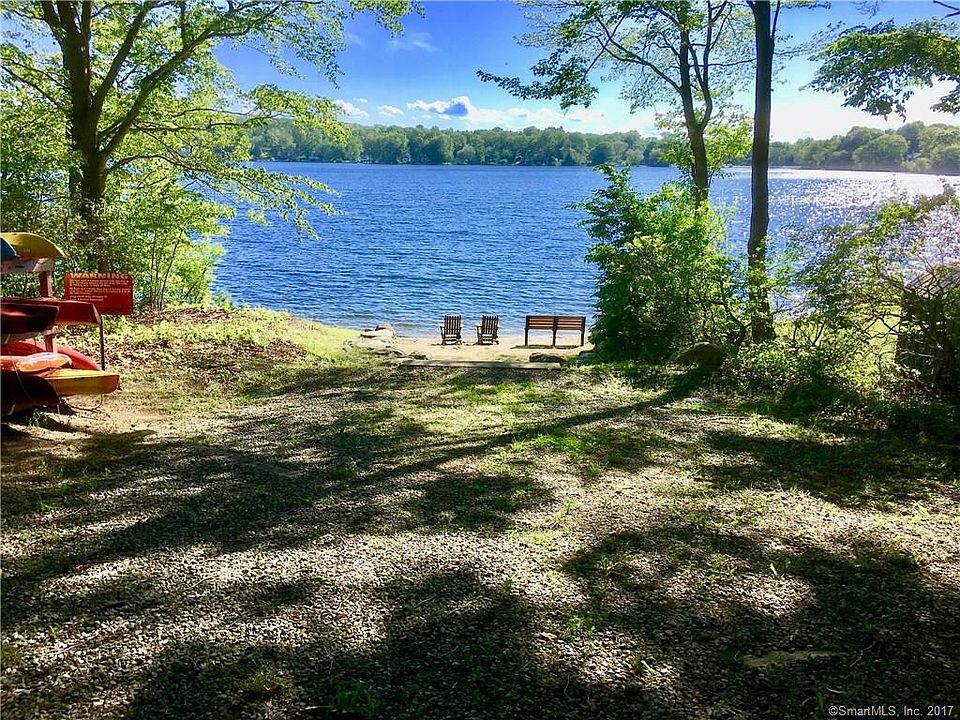 Situated by itself on a half acre lot at the top of a hill with only woods behind & surrounded on two sides by a stone wall is a stone patio, this no maintenance seasonal cottage offers everything that a cottage should. The interior employs a blue & white color scheme with large window areas to create a light & airy feeling. With one large bathroom, a generous bedroom and open concept kitchen, dining and living area this cottage feels bigger than it is. A generous storage shed will hold all your beach equipment & yard tools. The spa-like bathroom with it's bead boarded wainscoting, large white sink, vanity & stall shower is beautiful. The builtin bench in the dining area provides 3 large hinged storage areas in the seats. The builtin wall air conditioner along with the ceiling fans & the Empire propane wall furnace with newly installed propane line & tank means this cottage is ready for those cold early and late season days as well as those few hot summer days, The on demand water heater supplies instant and endless hot water. Amston Lake is a beautiful, quiet lake. No gas powered watercraft are allowed & the lake district has invested in a public water & sewer system making it one of the cleanest lakes in Ct. With great fishing, multiple beach areas and an active Lake Asso. with a variety of events all summer, this lake community has something for everyone. The many improvements done in 2017 including a new roof, gutters with gutter guards, new propane connection, new propane stove, exterior & interior paint job, extensive tree work on the lot, interior finish work, new window screen & heat wrapped external plumbing put the final touches on this lovely seasonal cottage. The cottage can be converted from seasonal to year round use.