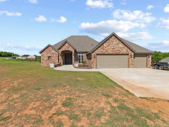 **Sellers offering $7,500 towards buyers closing costs, rate buydown, etc.** Welcome to your dream home nestled in the heart of tranquility! This exquisite one owner 3-bedroom, 2-bathroom residence with an additional office space is a testament to comfort, elegance, and contemporary living. Spanning across a generous 1,806 square feet, this charming abode is situated on a sprawling 0.5-acre lot, offering ample space for all your desires. As you step inside, you are greeted by an ambiance of warmth and sophistication. The open-concept living area boasts seamless flow, connecting the living room, dining space, and kitchen. Natural light spills in through large windows, illuminating the space and highlighting the fine details of the interior. The kitchen is a culinary haven, equipped with modern appliances, sleek countertops, and ample cabinet space. The master suite featuring a well-appointed en-suite bathroom and plenty of closet space. For those needing extra storage, the three-car garage offers ample space for vehicles, tools, and toys. Additionally, back patio area is quite dreamy! Imagine entertaining guests on the beautiful spacious back patio, complete with a fireplace, where you can unwind and enjoy the picturesque surroundings. Conveniently located near Blanchard, this home offers the perfect blend of suburban serenity and urban convenience. Enjoy the peace and quiet of your neighborhood while being just minutes from local amenities such as the new golf course, schools, parks, and entertainment options. Schedule your private showing today!